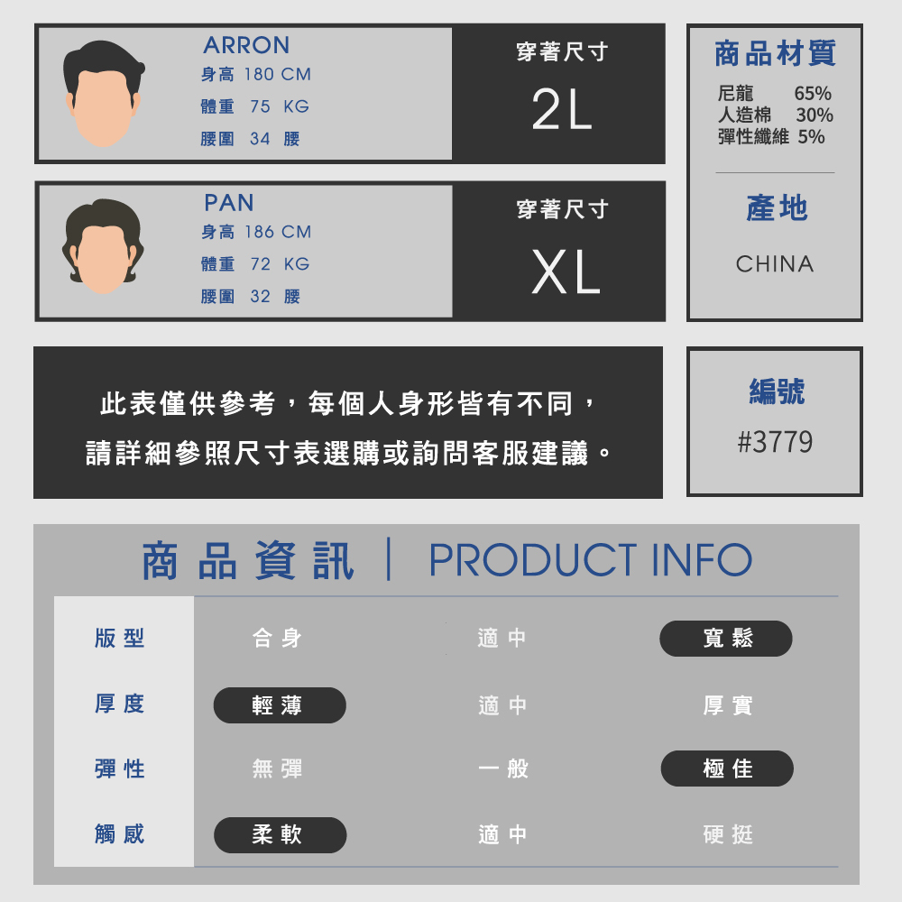 📌 尼龍65%、人造棉30%、彈性纖維5%